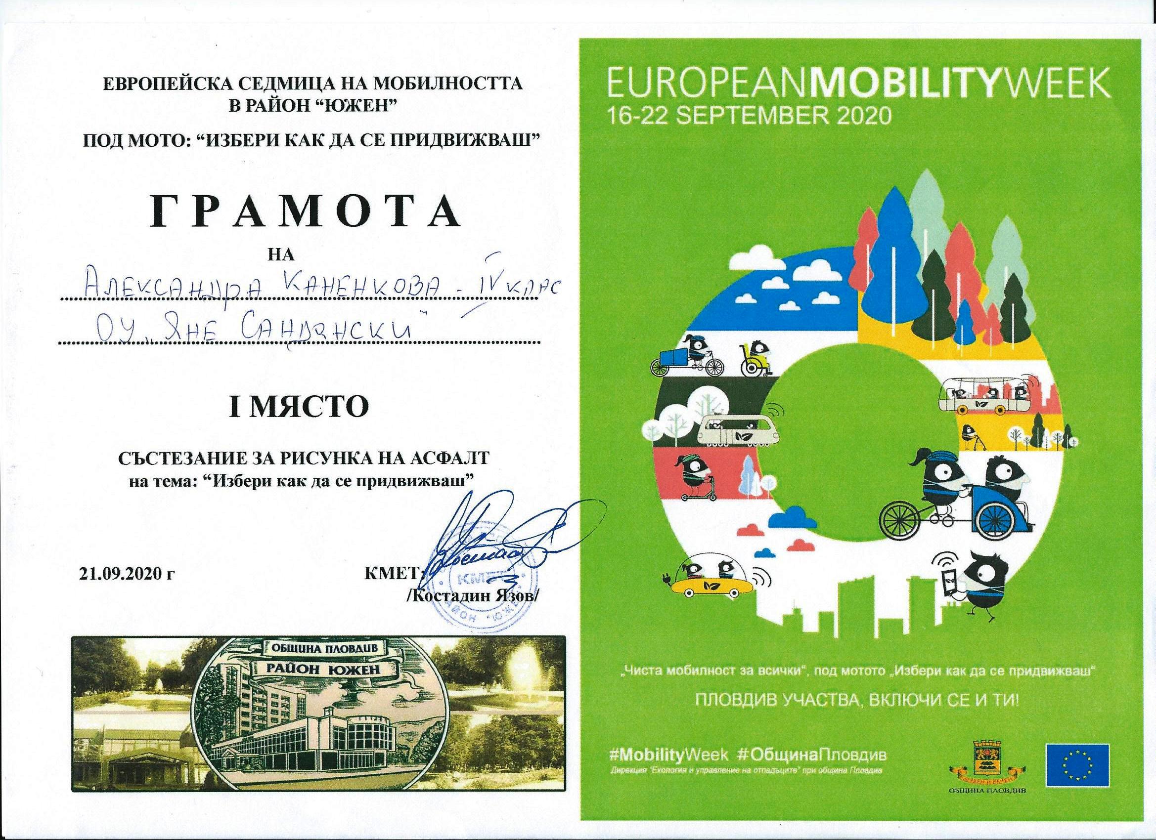Почетно консулство на Украйна в град Пловдив изказва благодарности на ОУ „Яне Сандански“