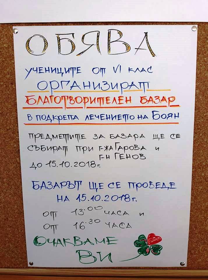 Предметите за базара ще се събират при г-жа Гарова и г-н Генов, до 15.10.2018г.
