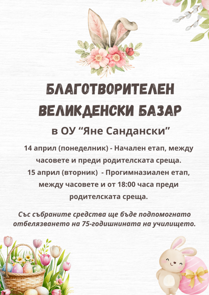Благотворителен великденски базар 14-15.04.2025 г.