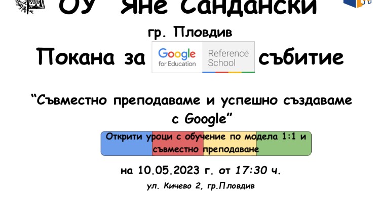 На 10 май 2023 г. ОУ „Яне Сандански“ сподели постиженията си като Гугъл референтно училище в събитие под надслов „Съвместно преподаваме и успешно създаваме с Google“. Гостите на събитието – експерти, учители и родители присъстваха на шест открити урока с обучение по модела 1:1 и съвместно преподаване: