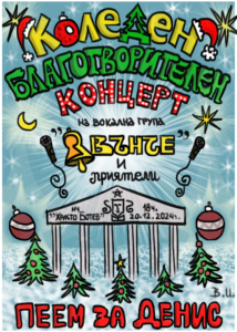 Заповядайте на Благотворителен Коледен концерт под наслов ,,Пеем за Денис”, който ще се състои на 20 декември 2024 г. от 18.00 часа в читалище ,,Христо Ботев”, район Южен.