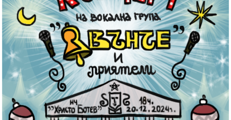 В навечерието на най-светлите празници бъдете част от коледното вълшебство, сътворено с огромно вълнение и обич от нашите възпитаници и техните преподаватели. Насладете се на разнообразна музикална програма с едни от най-обичните коледни песни, подготвени от децата от вокална група ,,Звънче”. За празничната атмосфера ще допринесат талантливи ученици, които ще представят изпълнения на цигулка и пиано. Малките танцьори ще изпълнят танц – аеробика, а участници от детския ансамбъл ,,Тракия” ще ни зарадват и ще ни накарат да танцуваме в такта на ,,Български ритми”.